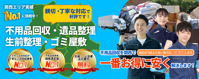 大阪府下に加え、兵庫・奈良・京都まで即日対応を掲げ、急ぎの片付けにも対応致します。